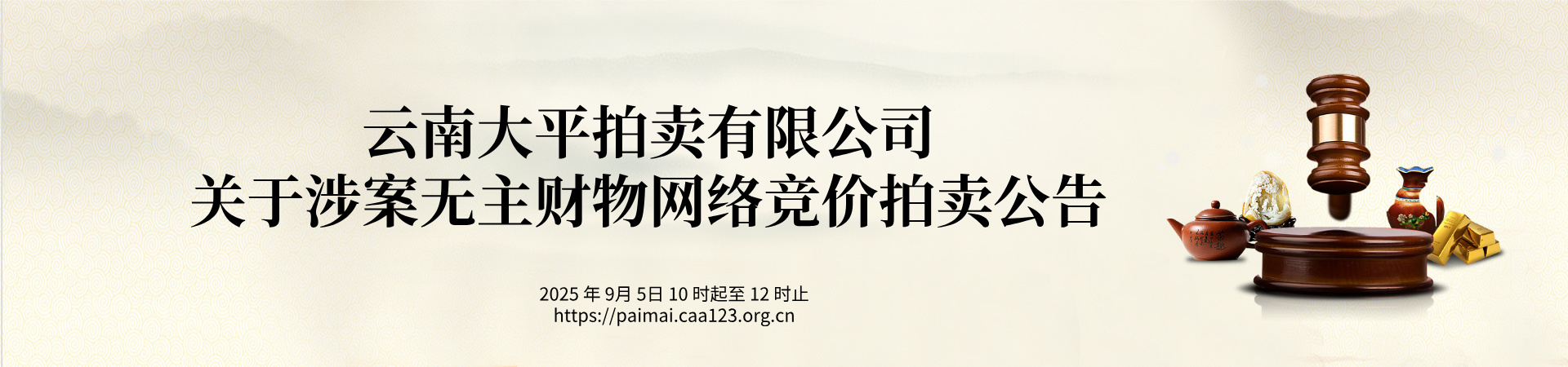 Copyright ? 2015 云南大平拍賣(mài)有限公司 版權(quán)所有。備案號(hào): 滇公網(wǎng)安備 53080202000386號(hào),滇ICP備12002892號(hào)-1